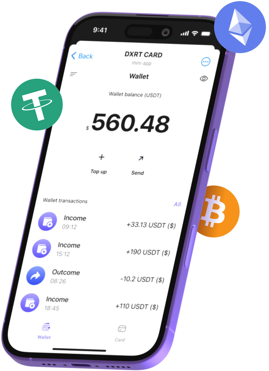 Платежные карты на базе мобильного приложения. Легко конвертируйте криптовалюту в фиат и оплачивайте ежедневные покупки.